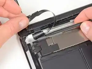 Вам нужно будет отсоединить клей, фиксирующий антенну к передней панели, не повредив при этом хрупкие элементы, соединяющие антенну с нижней частью iPad. Тщательно выполняйте следующие шаги.