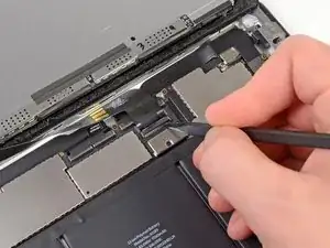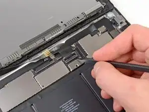 Используйте плоский конец спуджера, чтобы ослабить клей под шлейфом дигитайзера.