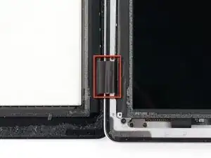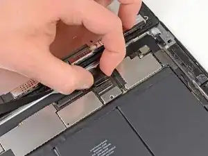 Клей в этом месте особенно густой, может потребоваться значительное усилие. Действуйте внимательно и медленно, чтобы не соскользнуть и не повредить себя или iPad.