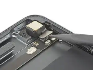 Используйте заостренный конец монтажной лопатки, чтобы отключить кабель фронтальной камеры, поднимая прямо вверх на нажимном разъеме.
