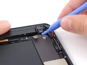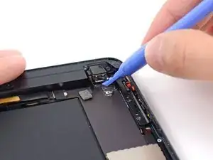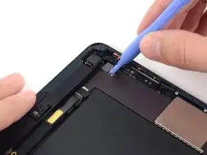 Используйте пластиковый инструмент для вскрытия, чтобы отжать разъём ЖК‑дисплея и снять его с гнезда на плате.