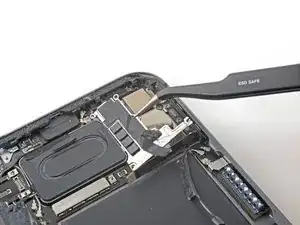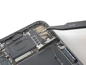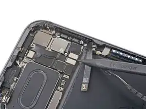 Верхний край iPad содержит модуль камеры, два датчика освещённости, датчик приближения и передний микрофон. Эти компоненты хрупкие и могут быть повреждены, если инструмент для вскрытия вставить слишком глубоко. Отделяйте клей только в отмеченных местах, чтобы избежать повреждений.