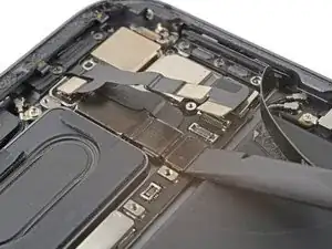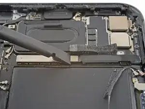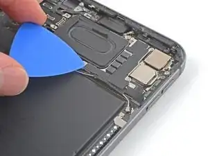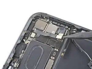 Используйте плоский конец лопатки, чтобы аккуратно приподнять и ослабить модуль задней камеры.