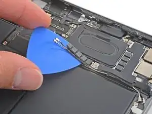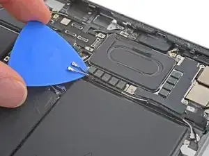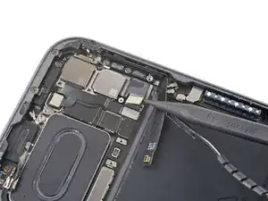 На левом краю iPad расположены несколько кабелей дисплея. Они чрезвычайно хрупкие и могут быть легко повреждены, если инструмент для вскрытия вставить слишком глубоко или под неправильным углом. Выполняйте инструкции точно, как написано, чтобы избежать повреждений.