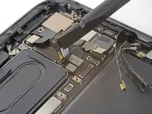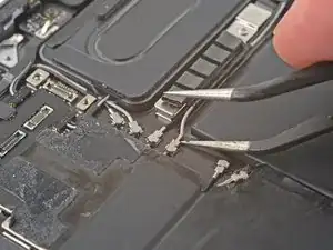 Чтобы отключить антенные кабели, воспользуйтесь пинцетом, ухватитесь за разъём вблизи кабеля и поднимите его вверх.