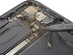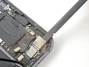 Используйте плоский конец лопатки, чтобы отключить гибкий кабель mmWave.