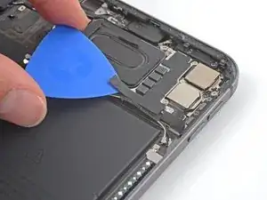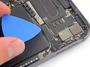 Проведите пластиной под антенными кабелями, чтобы отсоединить их от платы.