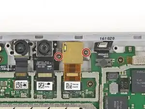 Используйте отвертку Torx T3, чтобы выкрутить два винта 2.2 мм, крепящие заднюю камеру.