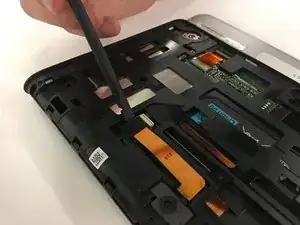 Используйте пластиковый инструмент для открытия, чтобы снять два резинок с задней стороны планшета.