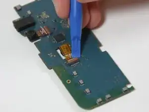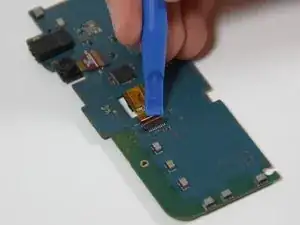 Используйте пластиковый инструмент для открытия, чтобы разблокировать разъём шлейфа задней камеры, поддев и откинув фиксирующий язычок.