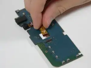 Пинцетом аккуратно извлеките провод батареи из разъёма, потянув его от фиксирующего язычка.