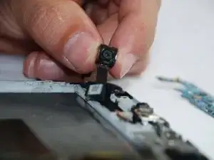 Отсоедините все шлейфы от гибкого кабеля, отвинтите гибкий кабель и удалите его. Это необходимо сделать, чтобы снять камеру, которая находится под гибким кабелем.