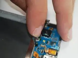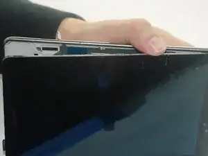 С помощью инструмента для вскрытия отведите серебристую рамку от стеклянного края планшета. Вам нужно будет обойти устройство несколько раз, прикладывая усилие, прежде чем она освободится.