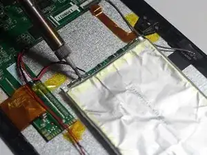 Аккумулятор закреплён к задней панели с помощью ленты и клея.