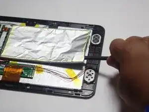 Порвите клей, удерживающий аккумулятор, с помощью инструмента для открытия.