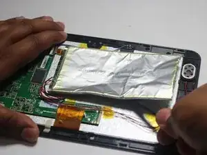 Снимите ленту вокруг аккумулятора и выбросьте её.