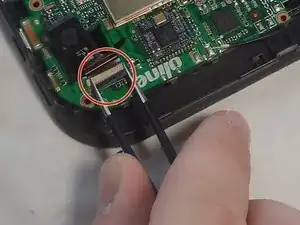 Чтобы завершить снятие камеры, отключите шлейф камеры от белого ZIF-разъема на материнской плате.