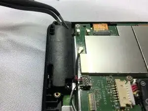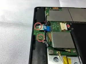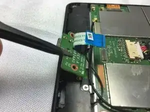 Аккуратно переверните материнскую плату. Отключите камеру, расположенную в верхней части платы, с помощью пинцета.