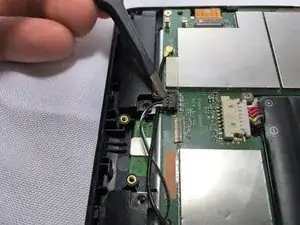 Отсоедините шлейф, соединяющий плату порта зарядки с материнской платой, с помощью пинцета.