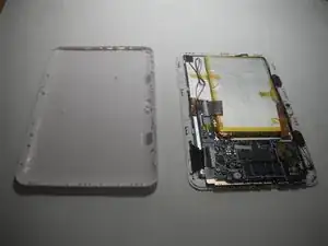 Снимите заднюю крышку вручную, когда все защёлки будут отщёлкнуты. Она должна полностью отделиться от экрана, содержащего аккумулятор и микросхемы.