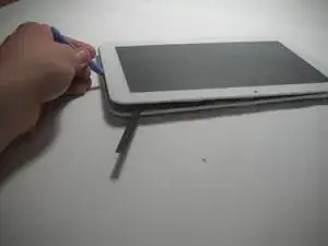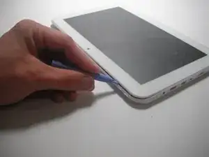 Вставьте пластиковый инструмент для вскрытия в зазор между экраном и задней крышкой над кнопками регулировки громкости.