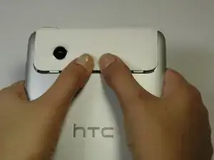 Нажмите на нижнюю часть белой панели с камерой и поднимите вверх.