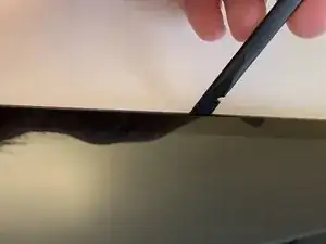 Удалите наклейку с помощью пластиковой лопатки, поддев её с одной стороны, после чего вы сможете снять её полностью, используя пальцы.