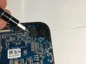 Используя относительно тонкую отвёртку с плоской головкой, аккуратно отсоедините соединение камеры от материнской платы.