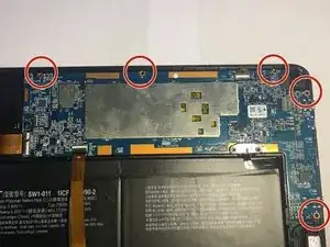 Удалите пять винтов по внешнему краю материнской платы с помощью отвёртки Phillips #0.