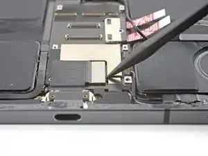 Используйте пинцет, чтобы снять два маленьких заземляющих зажима рядом с портом зарядки.