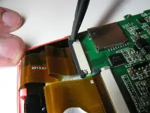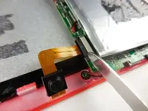 Отключите ленточный кабель камеры, удерживая зажим в открытом положении и вытягивая кабель.