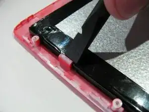 Используйте лопатку, чтобы многократно поддевать пространство между аккумулятором и ЖК-дисплеем. Добирайтесь вокруг аккумулятора, пока он не освободится.