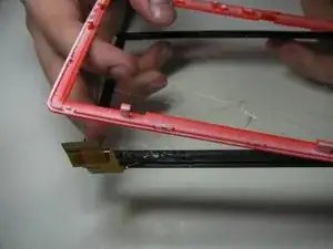 Извлеките ЖК-дисплей из защёлок с одной стороны. Сдвиньте его вбок, надавливая сбоку.