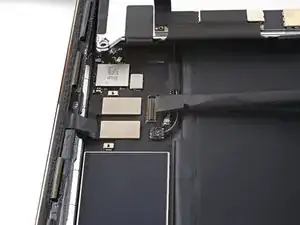Шлейфы дисплея расположены приблизительно на полпути от нижней части iPad. Прекратите движение, как только вы окажетесь в трёх дюймах от нижнего края iPad.