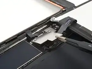 Поверните две лопатки, установленные в левых углах iPad, чтобы слегка приподнять дигитайзер, отделяя оставшийся клей.