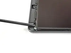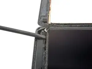 Вставьте лопатку между рамой и верхней правой частью ЖК‑экрана.