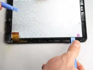 Вставьте пластиковый инструмент между ЖК-дисплеем и дигитайзером со стороны, где находится шлейф ЖК. Используйте второй пластиковый инструмент, чтобы отделить ЖК-дисплей от дигитайзера. Повторите этот процесс с обеих сторон шлейфа ЖК.