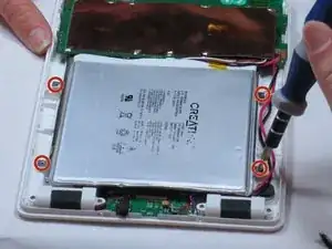 Уберите четыре винта Philips #00 размером 3 мм, расположенные вокруг большой серебряной батареи.
