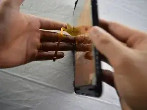 Снимите экран, удерживая планшет одной рукой так, чтобы задняя часть ЖК-экрана была обращена вверх. Медленно поворачивайте планшет, чтобы экран "упал" вам в другую руку.