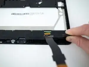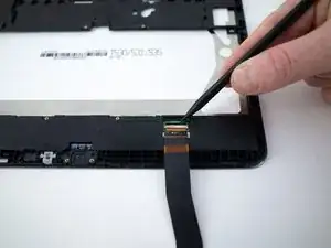 Используйте лопатку, чтобы откинуть маленький фиксирующий язычок на ZIF-разъёме дисплея.