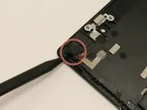 Используйте пластиковый инструмент для вскрытия, чтобы приподнять объектив камеры, начиная с левой стороны между зазором.