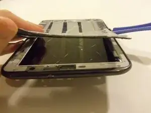 Используйте монтажный инструмент, чтобы отделить переднюю и заднюю панели, поддев инструментом край экрана и проводя им по периметру устройства.
