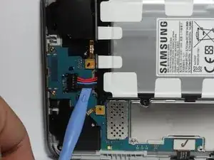 Отсоедините гибкий кабель батареи от разъёма, поддев провода монтажным инструментом и аккуратно поддев кабель.