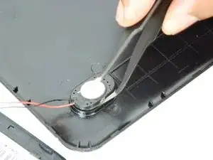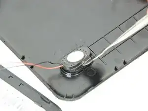 Используя крючковые пинцеты и лопаточку, осторожно оторвите приклеенный динамик от корпуса.