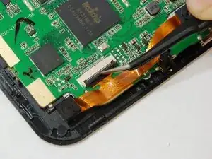 Используйте пинцет, чтобы приподнять чёрную фиксирующую защёлку сверху ZIF‑разъёма.