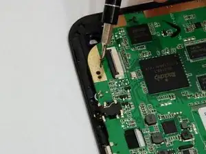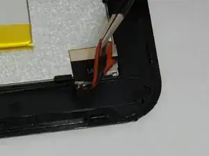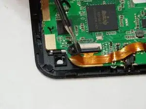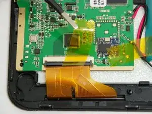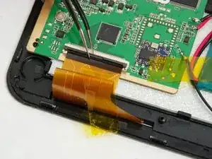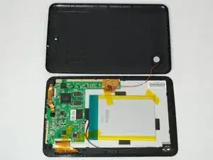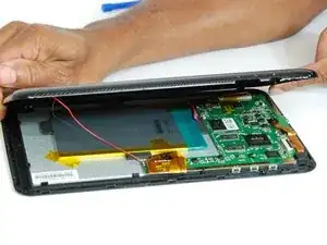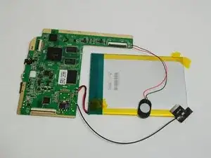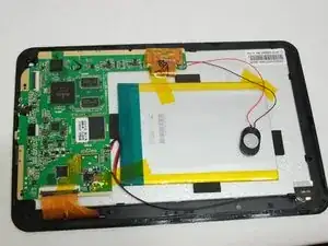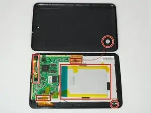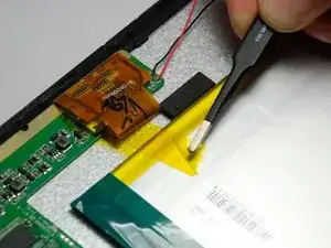 Батарея всё ещё подключена к плате; не повредите ленту, так как она удерживает батарею в корпусе устройства.
