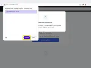 Выберите ваш умный паяльник в всплывающем окне с запросом на подключение последовательного порта.