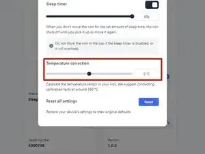 Set temperature позволяет изменить температуру паяльника с помощью ползунка.