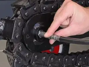 Наденьте наконечник шприца прямо на ниппель со стороны левой части узла ролика цепи.