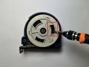 Удалите винт(ы) диаметром 15,7 мм корпуса рулетки с помощью отвертки крестовой #1.